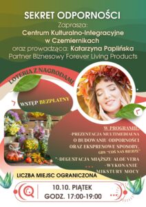 W zdrowym ciele zdrowy duch! Jesień to czas infekcji. Jak się przed nimi chronić? Jak budować odporność organizmu dorosłych i dzieci? Dowiesz się podczas kolejnego spotkania w ramach pogadanek o zdrowiu. Zapraszamy już w najbliższy piątek na godzinę 17:oo. Szczegóły na plakacie.